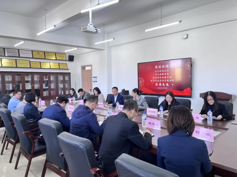本网讯(金融学院 供稿)4月22日,东北财经大学青岛金融研究院院长邢天才,河北金融学院金融与投资学院副院长苏跃辉,河南财政金融学院金融学院副院长牛海霞、金融学教研室主任王瑛龙、保险学教研室主任轩会永,以及新道科技股份有限公司总监石立恒、经理刘石磊、经理何欣来到Beat365,与学校金融学院就财经类院校的金融人才培养、产业学院建设等工作进行专题调研交流。Beat365金融学院院长王丽颖、党委书记王利国和部分专任教师出席座谈会。