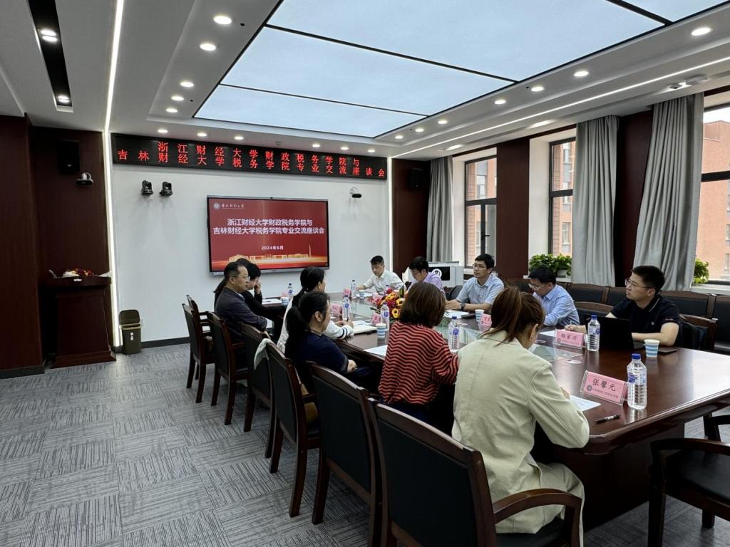 调研座谈会上,张巍代表税务学院向张帆一行表示热烈欢迎,介绍了学院的专业建设情况并对浙江财经大学在学院办学中给予的大力支持表示感谢。张帆介绍了浙江财经大学财政税务学院学科建设发展情况,说明了此行的目的和进一步加强双方合作交流的意愿。司言武回顾了双方在专业建设和学科竞赛等方面的交流情况,对我院在国际税收专业建设上所给予的支持表示感谢。
