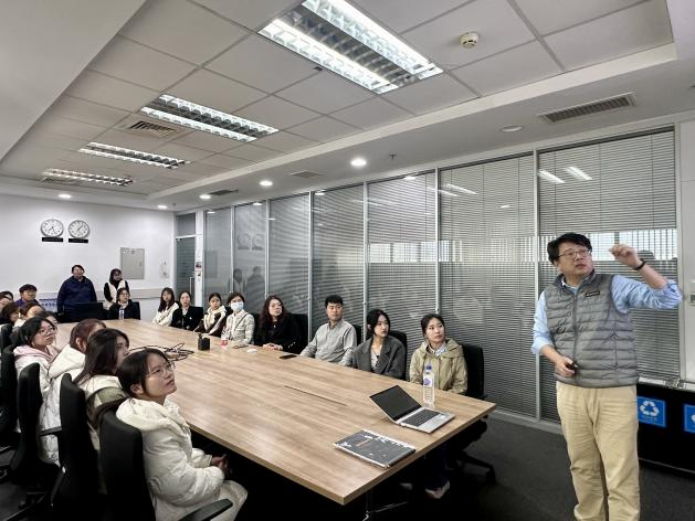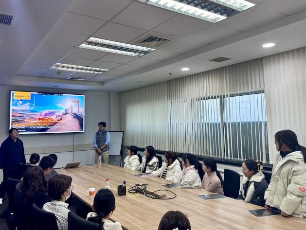 大陆汽车电子(长春)有限公司总监曹小康首先带领师生们参观了企业沙盘,细致地讲解了公司生产的具有代表性的汽车零部件功能及应用场所。随后曹小康为大家介绍了大陆汽车电子(长春)有限公司净月工厂的发展历程、集团组织架构与企业文化。大陆汽车电子(长春)有限公司经理刘迪针对财务方面向我院师生讲述了公司内部相关工作的具体内容,以及对实习生的要求。