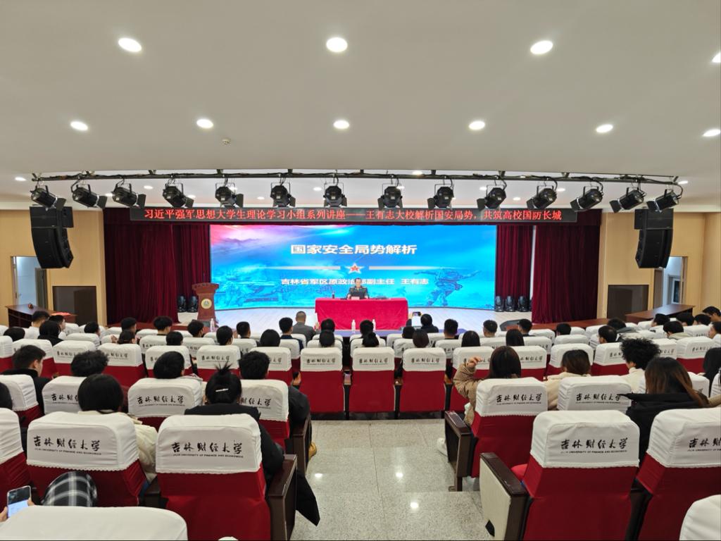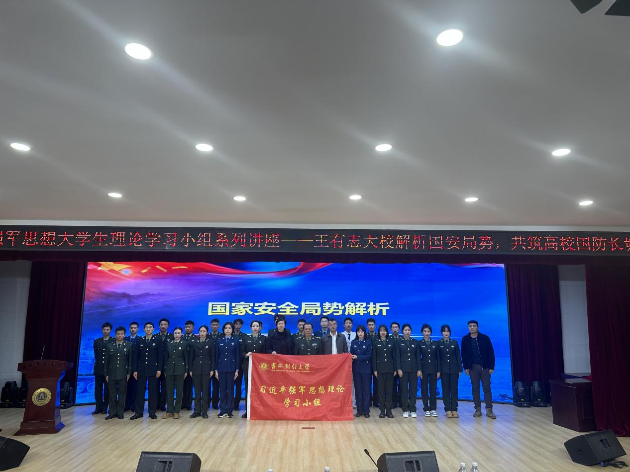 王有志从当前复杂的国际形势入手,以“兵者,国之大事也,死生之地,存亡之道,不可不察也”为切入点,引用历史和现实数据,从全球战略格局、地区热点问题及我国周边安全形势等多个维度深入剖析了当前的安全局势。他指出,当今世界正经历百年未有之大变局,国防和安全工作事关国家长治久安,也与每一位青年息息相关。结合实例,他呼吁新时代大学生要主动肩负起强国强军的历史责任,以理论武装头脑,以行动书写青春,成为新时代可信、可敬、可靠的青年力量。