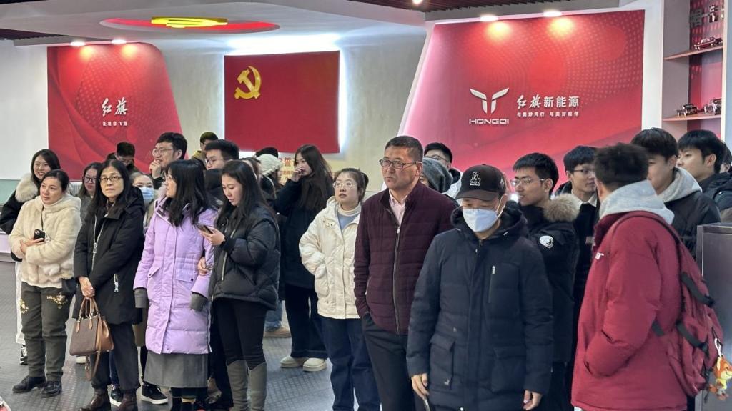 在红旗文化展馆,师生们仔细观看了红旗品牌的经典车型,了解了红旗品牌在不同历史时期所承载的使命与荣耀。每一款车型都仿佛是一个时代的缩影,特别是当看到红旗品牌近年来推出的新车型时,大家纷纷感叹于中国汽车工业的飞速发展与技术创新。讲解员提到:“红旗不仅仅是一个汽车品牌,更是中国精神的象征,它代表着中国人民自强不息、勇往直前的精神风貌,也承载着我们对美好生活的向往和追求。”这番话深深触动了在场的每一个人,让大家更加深刻地认识到了红旗品牌的价值与意义。