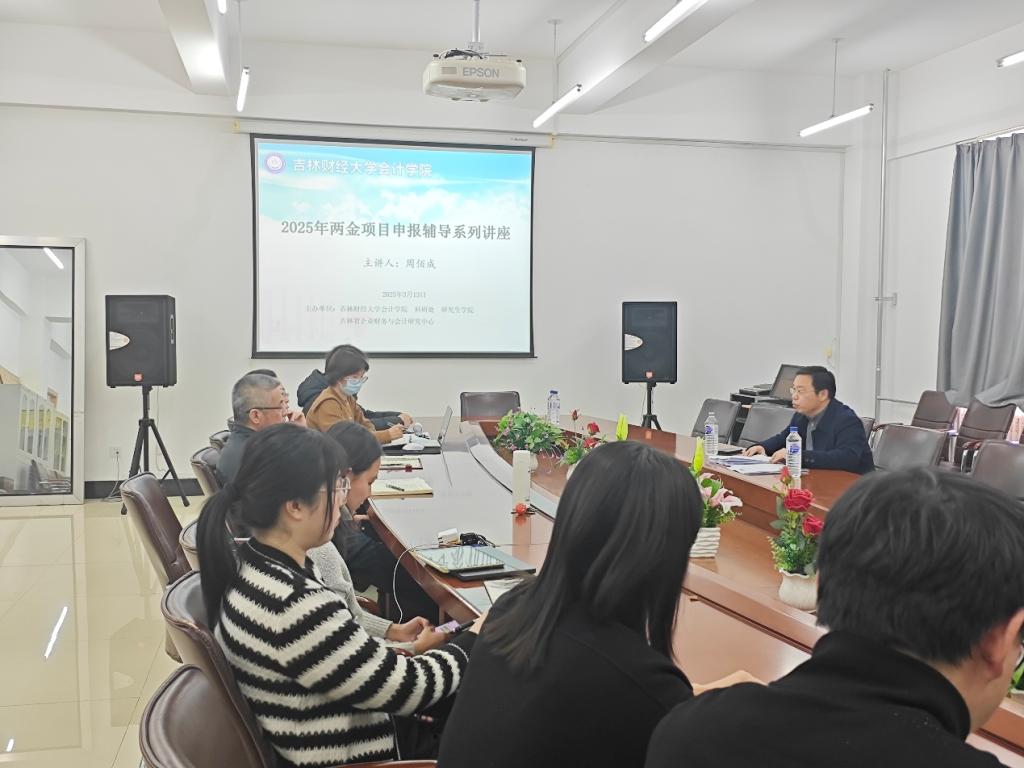 本网讯(会计学院 供稿)3月13日,会计学院开展2025年“两金”项目和教育部项目申报辅导会。本次辅导会邀请吉林大学经济学院周佰成教授作为指导专家。