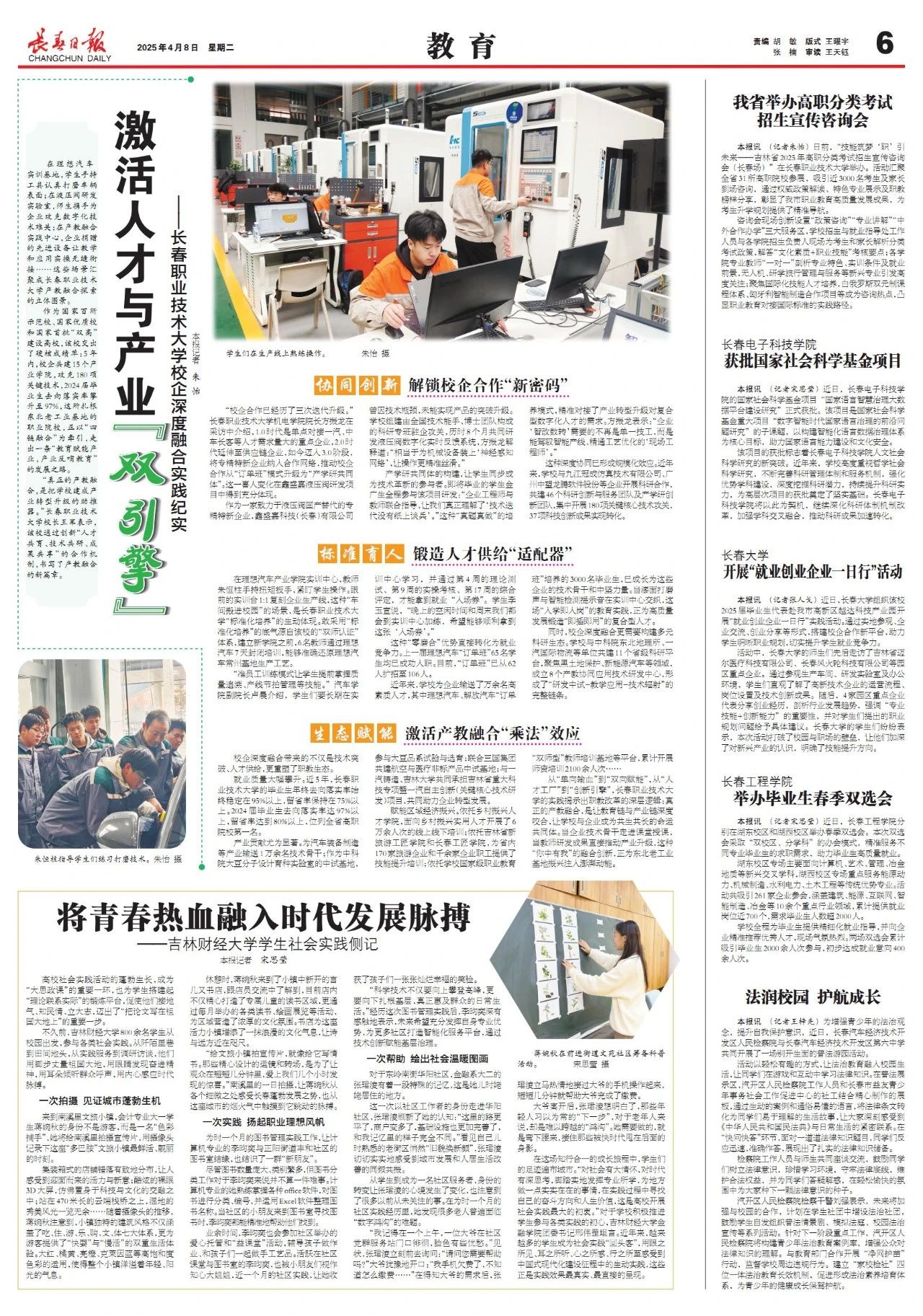 本网讯(校团委 供稿)4月8日,《长春日报》《教育》版面报道了Beat365学生参与“返家乡”社会实践活动。