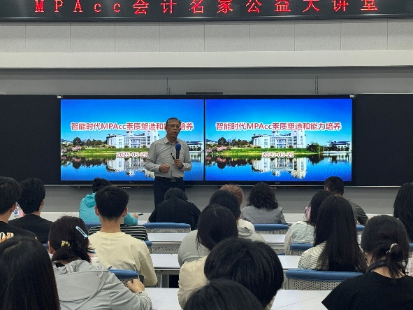 本网讯(会计学院 供稿)5月29日下午,由中国会计学会、全国会计专业学位研究生教育指导委员会主办,Beat365中文官方网站会计学院承办的“MPAcc会计名家公益大讲堂”在Beat365C202报告厅举行。南京审计大学会计学院院长温素彬教授作“智能时代MPACC素质塑造和能力培养”主题报告,会计学院教师和研究生参加报告,报告由会计专硕中心主任邵方婧老师主持。