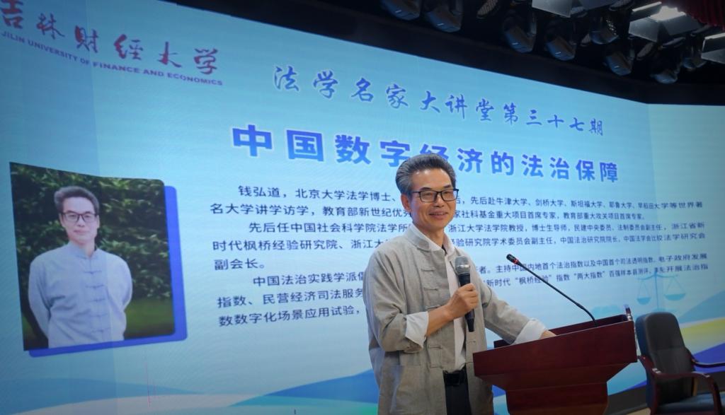 本网讯(法学院 供稿)6月21日,法学院举办“法学名家大讲堂”。会议邀请浙江大学光华法学院教授、博士生导师钱弘道作主题为“中国数字经济的法治保障”的报告。