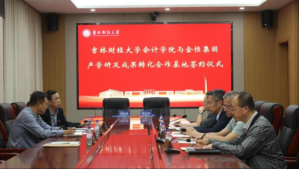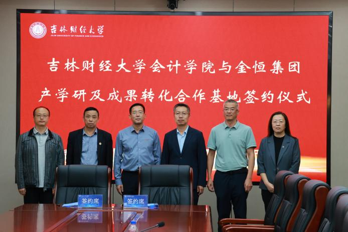 本网讯(会计学院 供稿)为进一步深化校企产学研协同合作,提升科研成果向实际应用转化,9月23日,学校会计学院与金恒智控管理咨询集团股份有限公司举行产学研及成果转化合作基地签约仪式。副校长祝国平出席并主持仪式。金恒智控集团副总经理尹星劼,金恒学院副院长吴彦杰参加签约仪式。