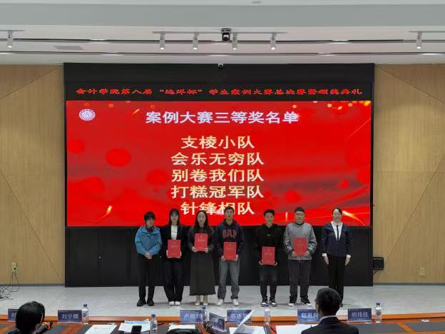 本次案例大赛共有16支队伍报名并提交了案例报告,经专家评审后评选出10支队伍进入决赛进行汇报。总决赛由会计学院刘宇娜、时军和胡玮佳3位教师担任评委。经激烈角逐,最终评选出一等奖2名、二等奖3名、三等奖5名。