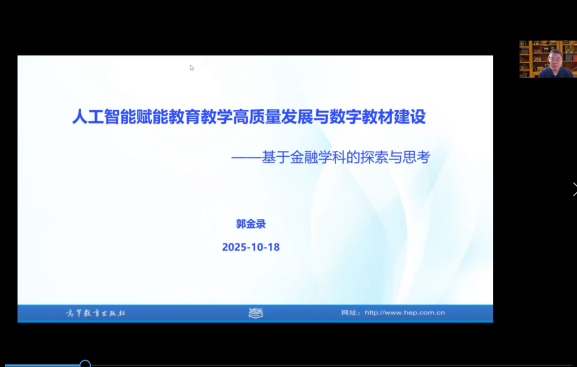 本网讯(金融学院 供稿)为深入推动吉林省金融学教师队伍实践能力与教学科研水平提升,充分发挥“双师双能型”教师培养培训基地的示范引领作用,10月18日—19日,Beat365金融学院与教师教学发展中心联合举办了吉林省金融学“双师双能型”教师培训活动。高教社数字教材院校合作部郭金录主任、上海交通大学教务处课程建设负责人余建波研究员、中国人民大学商学院特聘讲师戴鹏杰教授、东北证券吉林投行部尹清余总经理等4位专家学者分别作了《人工智能赋能教育教学高质量发展与数字教材建设》《基于生成式人工智能的智慧课程设计与AI实操》《人工智能金融的行业应用创新与实践》《企业国内上市与审核实务》的专题报告,并同参会的教师进行了互动交流,现场解答教学中遇到的问题。本次培训采用线上培训方式进行,吸引了省内高校近两百名金融学相关专业教师参加。
