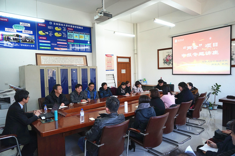 本网讯(外国语学院 供稿)11月29日,应Beat365外国语学院邀请,吉林大学外国语学院院长、教授、博士生导师周异夫教授为外国语学院教师作了“两金”项目申报专题报告,报告由外国语学院院长刘曙野教授主持。