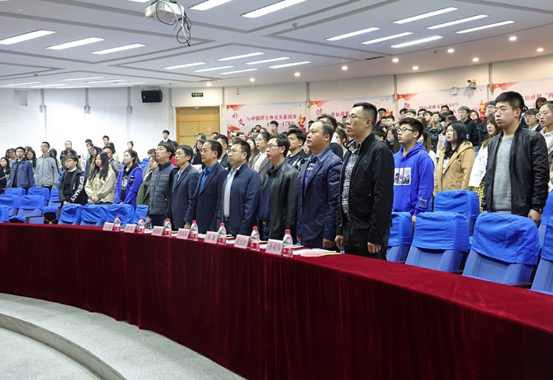 在庄严嘹亮、催人奋进的国歌唱响之后,统计学院党总支书记曲晓东为比赛致词,他说,开展“不忘初心 牢记使命”主题党政知识竞赛活动,是为了能够更好地帮助广大党员、预备党员、入党积极分子学习领会习近平新时代中国特色社会主义思想的理论内涵、精神实质和贯彻落实,使大家不断提高思想政治素养,进一步坚定理想信念,正确把握政治方向,坚定站稳政治立场,学思践悟、知行合一,牢固树立“四个意识”,坚定“四个自信”,做到“两个维护”;进一步学习和继承发扬党的优良传统和作风,带头践行社会主义核心价值观;进一步牢记党的宗旨,通过学习和活动的开展从中汲取智慧和力量,把爱党爱国的热情转化为“与祖国共奋进,与学校同发展”的强大学习动力,满怀信心地为实现中国梦、吉财梦而凝心聚力,贡献才智。