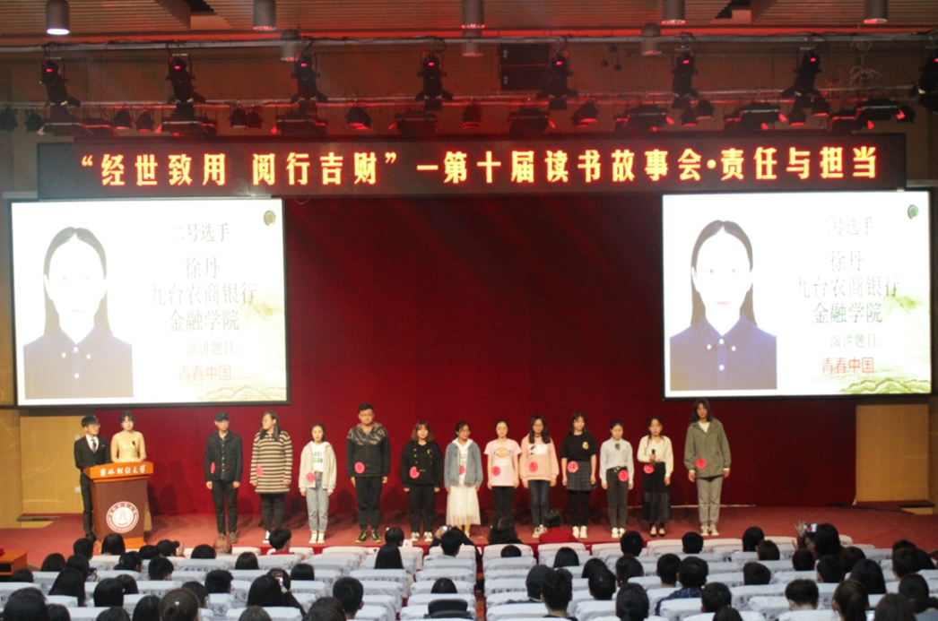 本次大赛在三月初正式启动,通过初赛、复赛的严格选拔有12名选手进入决赛。参赛选手根据大赛提供的参考书目选材,精心准备,发表以“责任与担当”为主题的演讲,将一部部经典文学作品以演讲的方式呈现在观众的面前。从我国历史上第一部纪传体通史《史记》,到红色经典作品《红岩》,再到时代楷模《焦裕禄》,再到《习近平的七年知青岁月》等。透过这些作品,选手们从当代青年的历史使命、红色爱国主义思想、伟大复兴的中国梦的时代主旋律等多个主题,诠释了作为当代大学生应当承担责任与使命。