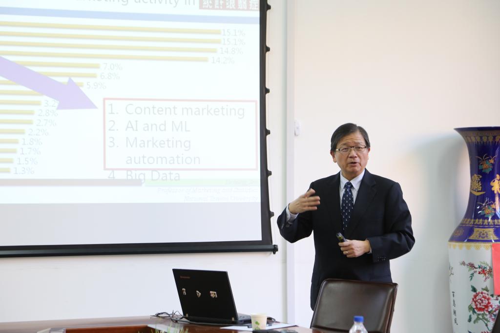 本网讯(亚泰工商管理学院 供稿)10月14日上午,亚泰工商管理学院邀请台湾大学任立中教授来院为师生作以“大数据营销的演变与应用”为主题的学术讲座。本次讲座由亚泰工商管理学院副院长邢楠教授主持,学院专任教师和研究生参加了讲座。
