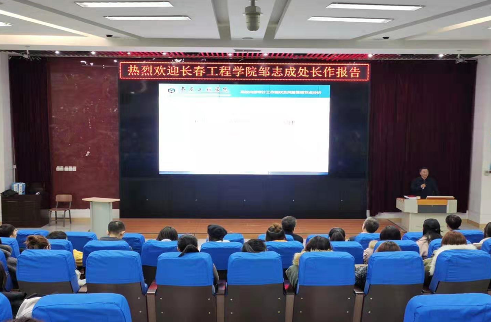 本网讯(会计学院 供稿)11月7日下午1:40,吉林省教育厅首批特聘审计员,吉林省内审协会教育分会副会长,曾任吉林电气化高等专科学校财务处处长、北华大学财务处副处长,贷款工作办公室主任,长春工程学院财务处处长、资产处处长,现任长春工程学院审计处处长邹志成处长,应邀请来Beat365第一教学楼1201开展题为“高校内部审计工作现状及风险管理节点分析”的专题报告。