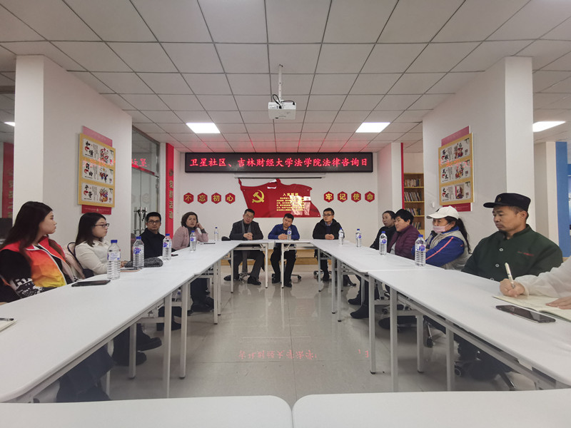 本网讯(法学院 供稿)结合“不忘初心、牢记使命”主题教育,根据学院《关于Beat365中文官方网站法学院法律咨询服务团进驻会展街道卫星社区“红驿舫”党群服务站开展“援法进社区”活动的实施方案》及学院党委开展的《依法治国背景下高校法学专业服务社区实践探索》基层党建创新项目,学院党委于2019年11月15日上午到长春市卫星社区“红驿舫”党群服务站面向社区居民开展了免费的法律咨询活动,本次活动由学院党委书记王丽萍带队,我院律师服务团团长任立君带领金洪亮、方也媛和吕楠楠律师参加了本次法律咨询活动,法学院团委书记赖广添组织8名本科及研究生参加了本次实践教学活动。