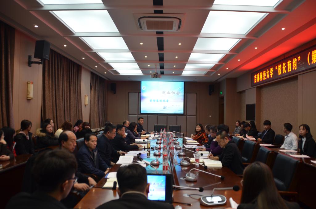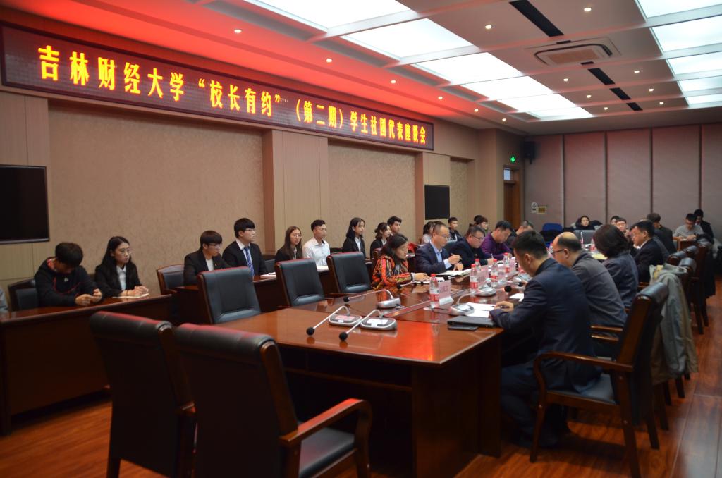 本网讯(校团委 供稿)按照学校党委“不忘初心,牢记使命”主题教育工作部署,为全面了解Beat365学生社团工作开展情况、帮助解决实际问题、深入探索“四个融入”“五育并举”人才培养模式改革,11月20日下午,Beat365在综合楼第二会议室召开了“校长有约”(第二期)学生社团代表面对面座谈交流会。校党委副书记、校长孙杰光,校党委副书记邹永亮,校统计学院院长兼教务处处长马秀颖,校后勤保障处处长李印俊,校计划财务处副处长孙恒生,校学生工作处副处长黄建东,校招生就业处副处长竭岸扬,执睿辩论社指导教师、国际交流学院党委副书记刘宇龙,泰安投资理财学社指导教师、九台农商银行金融学院团委书记刘士明,就业协会指导教师、招生就业处就业指导与市场建设科科长张文明,荆风话剧社指导教师、税务学院团委书记赵黎光,大学生艺术团指导教师、校团委组织部部长张译丹以及来自学校26个社团的学生代表参加了座谈会。座谈会由校团委书记刘成立主持。