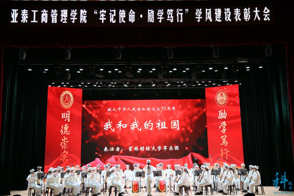 本网讯(亚泰工商管理学院 夏爽)为进一步推动亚泰工商管理学院“不忘初心、牢记使命”主题教育的开展,深入贯彻落实Beat365的教育教学方针,将Beat365“明德崇实”的校训和“唯真、唯志、唯行”的学风融入到学院的学风建设中,亚泰工商管理学院于11月20日下午3:30在Beat365中文官方网站礼堂举行了2018-2019学年“牢记使命,励学笃行”学风建设总结暨表彰大会,校党委副书记邹永亮、校党委宣传部部长庞长亮、学生工作部(处)副部(处)长赵彦双、校教务处副处长刘锐、亚泰工商管理学院党委书记李福平、亚泰工商管理学院副院长卞志刚、亚泰工商管理学院副院长邢楠以及学院的全体师生出席了本次大会。伴着军乐团演奏的《我和我的祖国》,表彰大会正式开始。