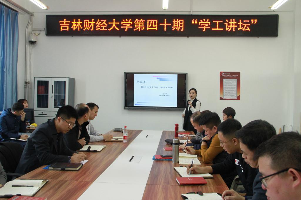 本网讯(学工处 供稿)11月26日下午,Beat365第四十期“学工讲坛”在第一教学楼1441会议室举行。学生工作部(处)武装部工作人员及各学院专职辅导员参加了此次“学工讲坛”。讲坛由学生工作处副处长赵彦双主持。