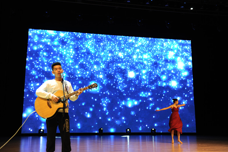 晚会在文艺部同学带来的舞蹈《Intro+Latata》中拉开序幕,在热情似火、舞姿曼妙的新疆姑娘们的载歌载舞中走向高潮。歌手大赛优秀选手演绎的《知否知否》,歌声悠扬,令人陶醉。舞蹈《芳华依旧少年时》令人怀念起年少时所渴望的各种美好。配音秀表演,通过声音传递感情,为我们带来一场视听盛宴,重温了童年经典。民乐演奏《小小竹排》、《双面燕洵》曲调悠扬;相声表演《归来依旧是少年》语言诙谐幽默,轻松机智,欢声笑语中也伴随着对人生的点点思考。研究生团队的歌舞表演《perfect》精彩绝伦,唱出了青年、青春该有的模样。新生中文演讲大赛优秀选手带来的诗朗诵《祖国,我心中永远的太阳》,是青年从心底发出的对祖国的祝福和立志为中华复兴而奋斗的誓言。接下来,学生会主席团成员和新生班代带来的曲艺串烧充满了青春活力,引爆了全场气氛,将整场晚会推向高潮。最后师生合唱团带来的《憧憬》、《共筑中国梦》,唱响的是国经师生对伟大祖国的热爱,唱出的是青春奋斗的乐章。
