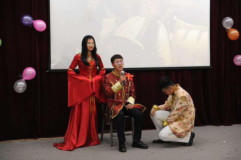 国经学院大一学生以班级为单位为大家带来了一幕幕精彩的英语短剧。1914班首先登场,演绎了《沉睡魔咒》,同学们用生动的表演,华丽的服饰,重现了电影中的一幕幕经典桥段。随后,1917班带来表演《百万英镑》,同学们用极强的表演能力为我们还原了经典。1912班带来的表演《哈利波特》,用流利的英语对白及自如的表现,带领现场观众重温了那段魔幻的故事。1983班的《关于爱》,分别改编自《大话西游》、《五十度灰》、《流星花园》,一段段经典重现和恰到好处的改编以及生动有趣的表演,引爆全场。最后1984班为大家带来《闻香识女人》,剧情流畅,令人回味无穷。