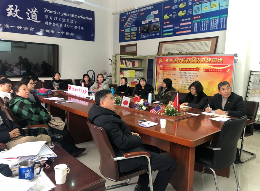 本次经验交流会由外国语学院副院长、外国语学院教工党支部书记孙佳同志主持,外国语学院孙佳、马艳秋两位老师与参会领导和老师分享了她们进行课程思政教学改革的经验,外国语学院党总支书记樊征宇、院长王艳华、党总支副书记张文东及全院老师参加了会议。