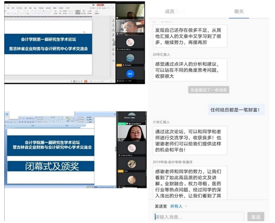 本网讯(会计学院 路曼 刘莉)4月25日8:30—16:00,会计学院师生疫情期间秉承着特殊时期师生学术科研不停歇的精神,以线上腾讯视频网络会议形式召开了会计学院第一届研究生学术论坛暨吉林省企业财务与会计研究中心学术交流会,本次学术研讨会的主要参会人员是Beat365中文官方网站会计学院教师、研究生、科研菁华班成员和部分本科生,共计260余人参加。论坛开幕式由会计学院院长梁毕明主持。