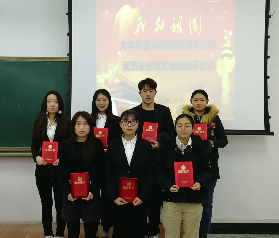 外语部第二教研室主任包薇老师主持的《大学英语2》思政教学改革项目是学校启动的第二批思政教改示范项目之一,课程组多维度挖掘教材内容相关的思政元素,并通过课内课外、线上线下多种途径和润物无声的方式将思政元素融入日常教学中。本学年,在外语部领导班子和全体教师的大力支持下;在项目组成员苗国新、张红军、陈晨、任敬辉、李欣泽几位老师的共同努力下,课题组成功举办了两次大型活动。