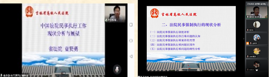 系列讲座共设6场,6位主讲人分别是:吉林省法官培训学院交流合作部蓝贤勇主任、长春市中级人民法院民事审判四庭李雨萍副庭长、长春市双阳区人民法院梁伟副院长、上海大成律师事务所高级合伙人陈胜博士、我院双师型教师任立君、方也媛老师。6名主讲人在暑假的每周三晚7点在线为学生做报告。系列讲座视角多元,既包括律师视角、当事人视角、还包括法官视角;讲座的内容覆盖面广,既涉及民事法律制度、刑事法律制度,还涉及执行问题,涉外法律适用等问题。以视角多元、内容丰富为特征的系列讲座信息一经发布,在学生中引起了广泛关注。