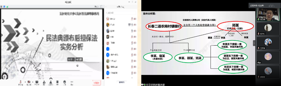 任立君老师在《民法典》新出台的时代背景下,结合案例对担保法的理论革新和随之而来的实务变革进行了深度的分析,对担保制度的体系改变、保证合同编的修改、保证方式推定规则的变动以及主合同对保证合同效力等方面逐一进行了细致的解释。任立君老师对此次民法典作出的修改做了系统化的讲述并阐述了背后的法理,语言通俗易懂,引人入胜,引发了在场同学深刻的思考。