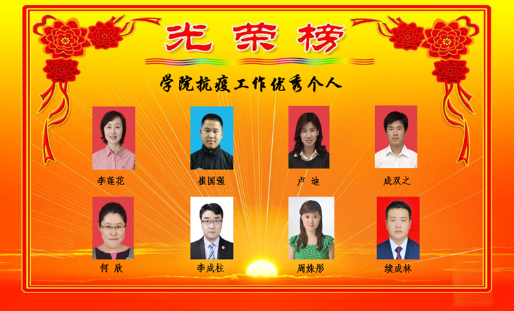 接下来,表彰了“抗疫工作优秀个人”。今年初以来,新冠肺炎疫情爆发以后,全院上下认真做好各项疫情防疫工作,克服困难做好网上教学工作,并认真开展修改教学大纲、学科评估、毕业生就业等各项工作,这些工作都取得较好成绩,保证了学院事业的发展。为了表彰在抗疫工作和在抗疫期间完成学院各项工作中成绩突出的同志,学院决定评选表彰抗疫工作优秀个人,获得“抗疫工作优秀个人”的教师是崔国强、成双之、李莲花、卢迪、何欣、李成柱、周姝彤、续成林等八位教师,会上党总支副书记张文东、副院长孙佳分别为他们颁奖。