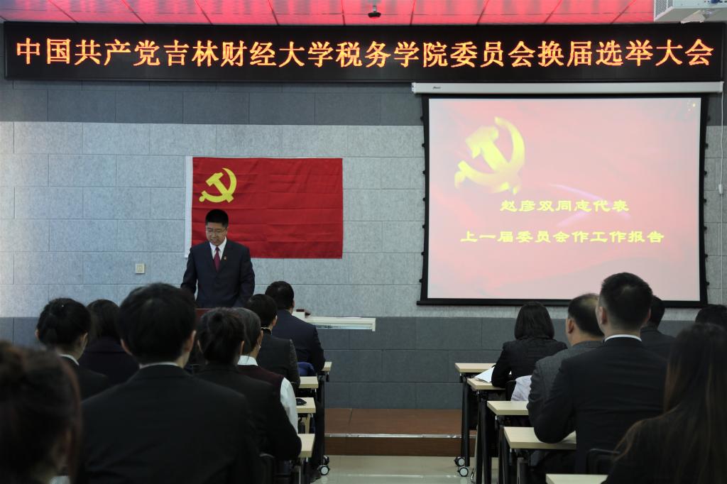 本网讯(税务学院 供稿)根据《中国共产党章程》《中国共产党基层组织选举工作条例》《中国共产党普通高等学校基层组织工作条例》等党内法规规定,按照《Beat365中文官方网站基层党组织换届选举工作实施方案》要求,11月4日14:00,税务学院在逸夫教学楼2211教室举行了中国共产党Beat365中文官方网站税务学院委员会换届选举大会,学院全体正式教工党员和学生党员64人参加了本次会议,税务学院院长张巍同志列席会议。学院上届党委青年委员苏扬同志主持大会。