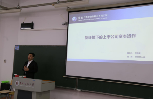 本网讯(会计学院 顾峰溢)11月5日下午1:30,会计学院邀请富奥汽车零部件股份有限公司(富奥股份)董事会秘书、注册会计师、律师、会计学院实务导师李志勇老师,来Beat365第一教学楼1223教室开展题为“新环境下的上市公司资本运作解读”的实务讲座。