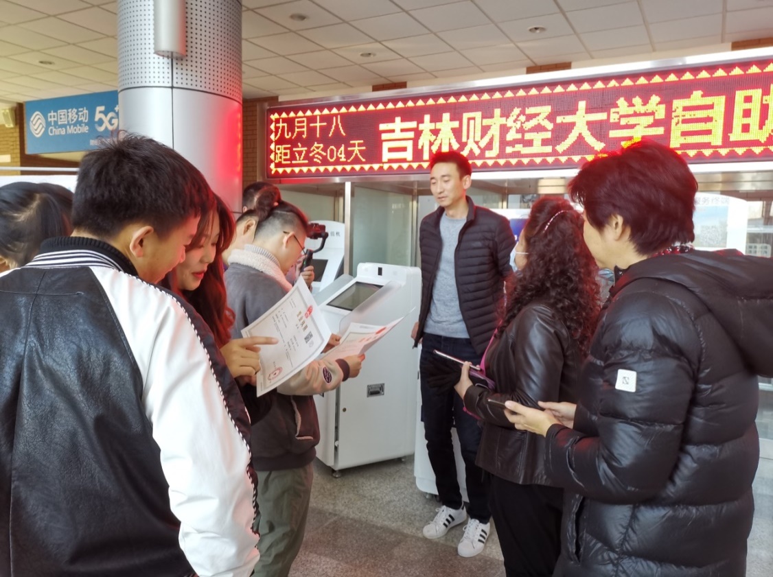 本网讯(国际经济贸易学院 供稿)11月3日,国际经济贸易学院四组创业学生,通过设置于实验楼一楼大厅的企业登记自助打照机,打印出属于他们自己的营业执照。这标志着国际经济贸易学院跨境电商创业孵化基地支持孵化的首批四家学生创办的企业正式成立运营。同时他们也成为孙杰光校长支持大学生创新创业,在校设置企业登记自助打照机以来的首批使用者。