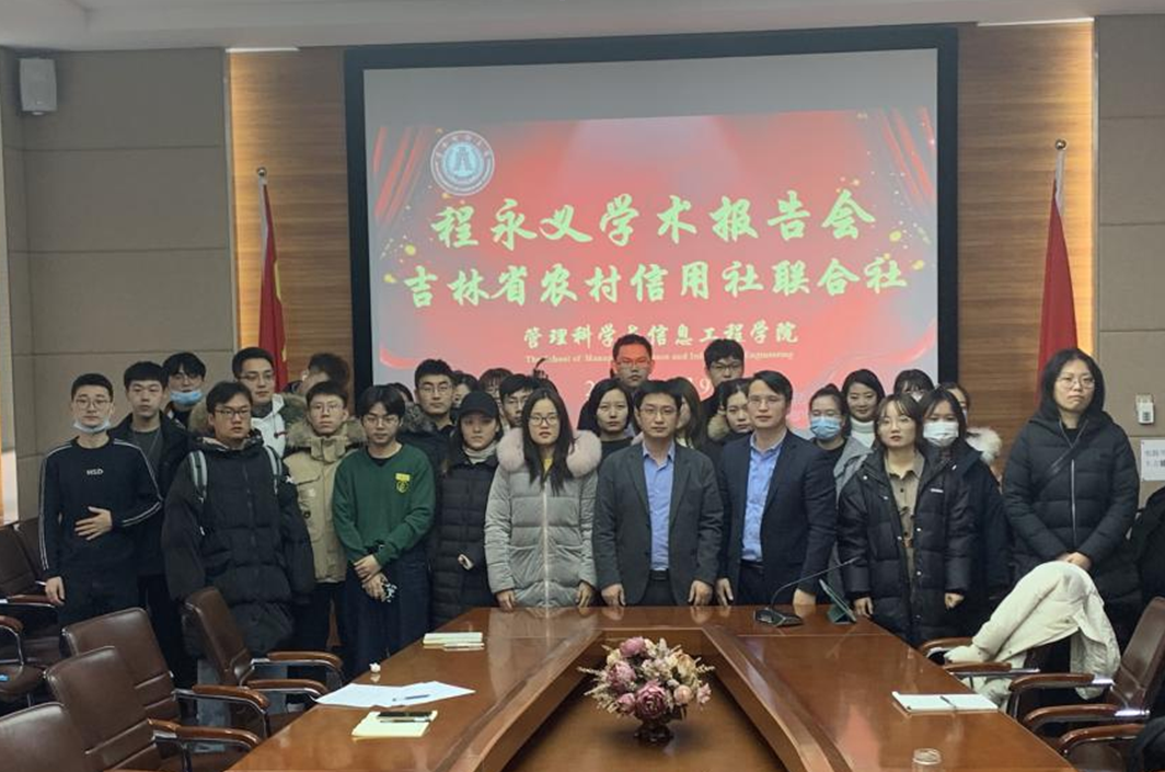 本网讯(管信学院 供稿)12月10日上午,应管理科学与信息工程学院副院长姜建华教授邀请,吉林省农村信用社联合社科技信息中心总经理助理、金融信息系统高级架构师、程永义博士在学校综合楼207会议室为学院教师与研究生作金融科技学术报告会。报告题目为《金融科技发展趋势分析及在银行的应用实践》,学院部分教师及研究生近50人参加了此次学术报告会,报告会由姜建华教授主持。
