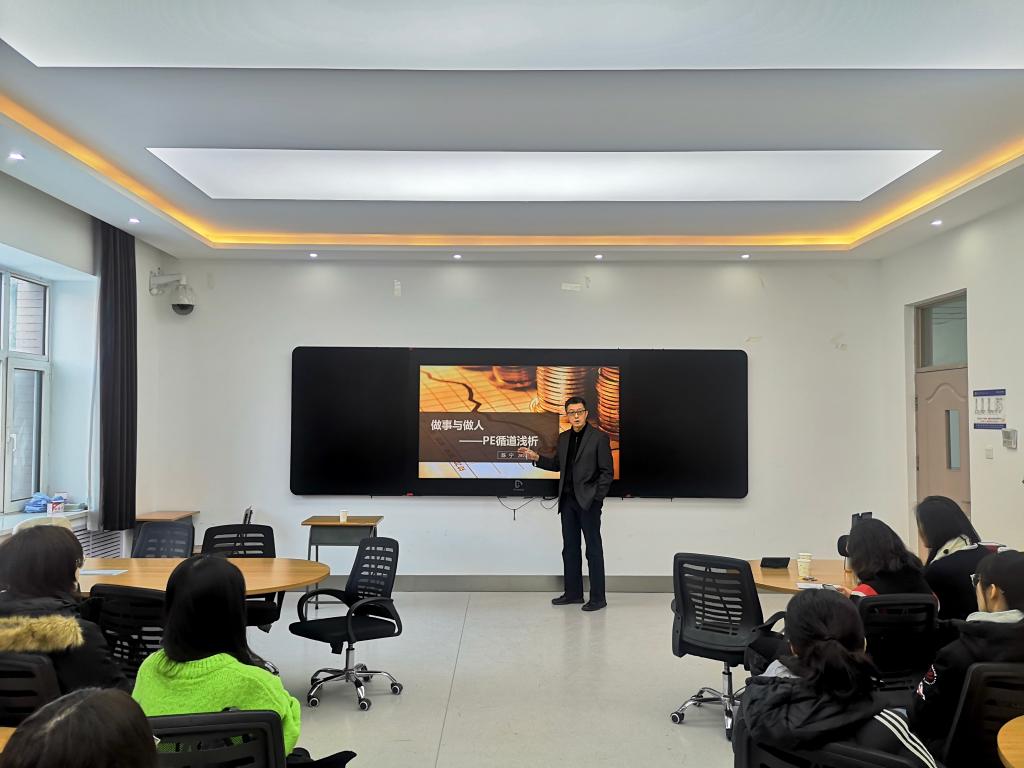 本网讯(金融学院 供稿)12月11日下午,吉财资本董事长、吉财全国校友联谊会会长,吉财北京校友会会长,金融学院专业硕士实务导师陈宁学长在Beat365第一教学楼1220教室作题为“做事做人之道——PE循道浅析”的报告。报告会由金融学院王丽颖副院长主持,2020级金融专硕与保险专硕的同学们认真聆听了本次报告。
