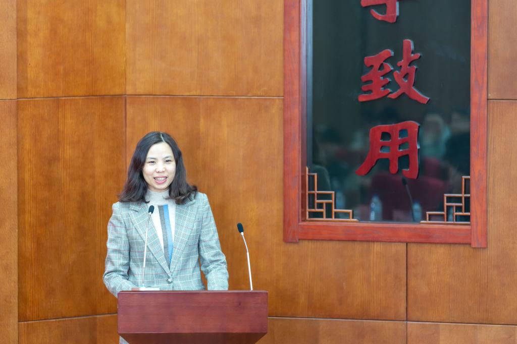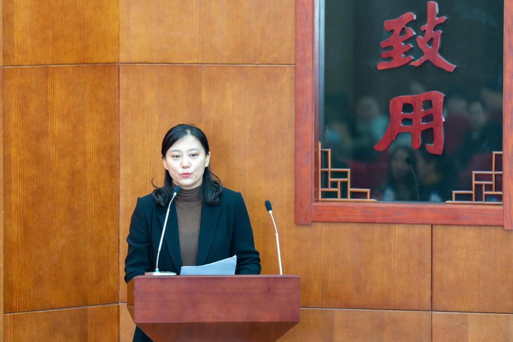 王丽颖副院长首先对本次期货人才培育项目实施情况进行了总结,该项目于2020年9月9日启动,24位实战经验丰富的来自监管部门、证券公司、期货公司的高管人员和业界专家以及高校老师给培训班的学员们讲授《期货投资实务》课程,总学时为54个课时,既有理论讲解、实际案例分析,还有带领学生参观访问期货公司、模拟交易、学习体会交流等实践活动。我院2019级金融专业硕士研究生和2018级金融工程专业本科生共计89人参加了培训学习,经考核顺利结业82人,其中12人被评为优秀学员,获得大商所奖学金。她向期货人才培育项目的主办方大连商品交易所、吉林证监局和吉林省证券业协会的全力支持和精心组织表示衷心感谢,向付出辛勤劳动的老师们表示崇高敬意,向圆满完成学习任务的各位同学表示热烈祝贺。希望同学们能够在实践中学习,在学习中成长,将来学以致用,为期货行业做出自己的贡献。最后,表示学院将与大连商品交易所、吉林证监局、证券业协会在科学研究、人才培养、案例建设、社会服务等领域展开更多的合作,助力地方经济发展。