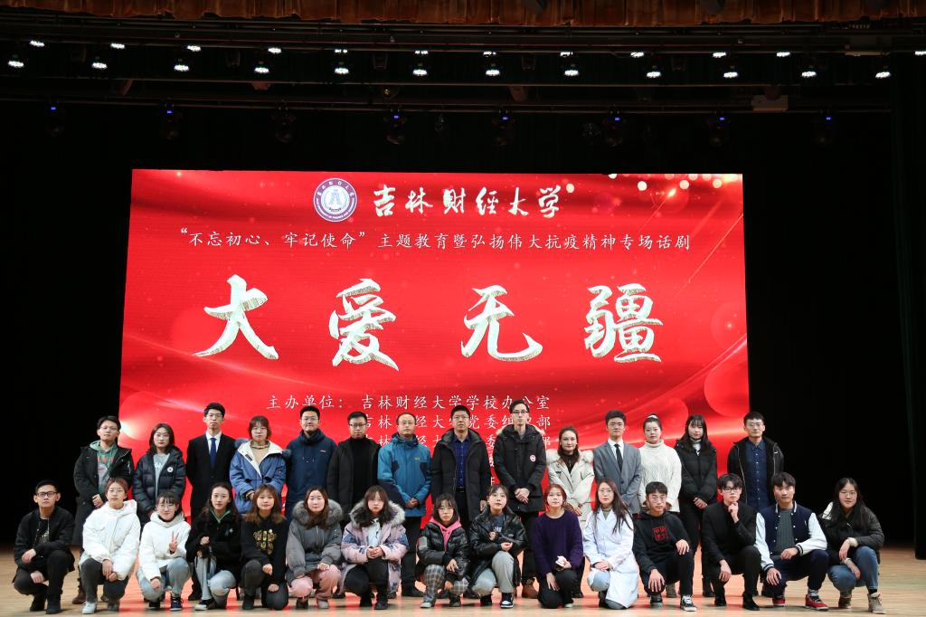本网讯(税务学院 供稿)为了巩固深化Beat365中文官方网站“不忘初心、牢记使命”主题教育成果,由Beat365党委办公室、党委组织部、党委宣传部、党委学生工作部、校团委主办,税务学院荆风话剧社承办的弘扬伟大抗疫精神专场话剧《大爱无疆》于12月7日在多功能学术报告厅举行公演录制,并取得圆满成功。