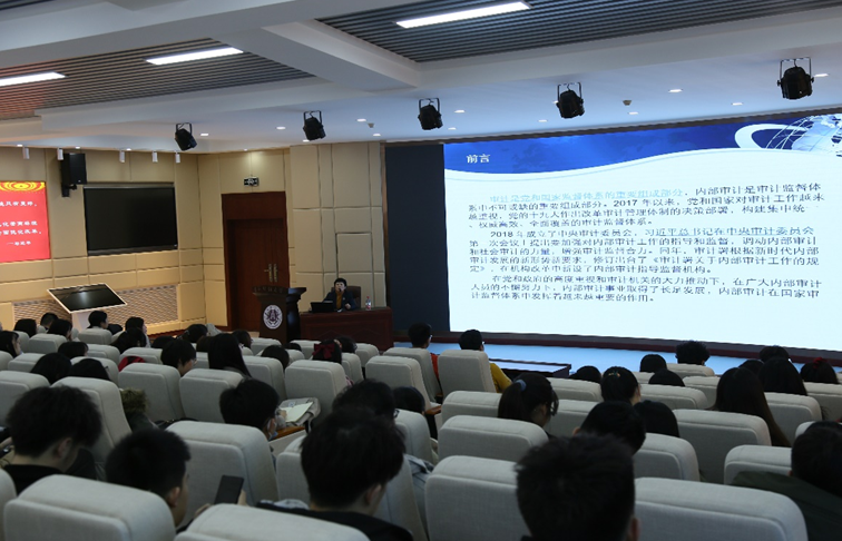 首先,黄海英老师为同学们讲述了国家审计、内部审计和社会审计是审计的具体组成部分,并强调内部审计的作用是监督、评价和建议。随后,通过“坚持问题导向,全面完整履行内部审计职责”专题向同学们详细介绍了内部审计的概念、范围、目标、对象和职能。并且向同学们讲述了古代内部审计始于西周,近代内部审计始于19世纪后半期,新中国内部审计发展于20世纪80年代,这段历史的讲述大大提高了同学们对内部审计的兴趣。黄海英老师又通过“委托代理理论”和“受托经济责任”两方面说明了内部审计产生的基础和动因。
