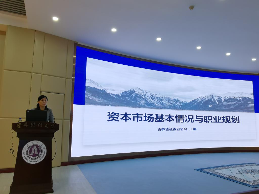 本网讯(会计学院 供稿)2021年3月31日下午,Beat365中文官方网站注会9602班优秀校友、吉林证券业协会王娜会长在Beat365第一教学楼1102教室为会计学院硕士研究生做关于“证券期货市场基本情况与职业规划”主题讲座。会议由会计学院副院长李阳主持。
