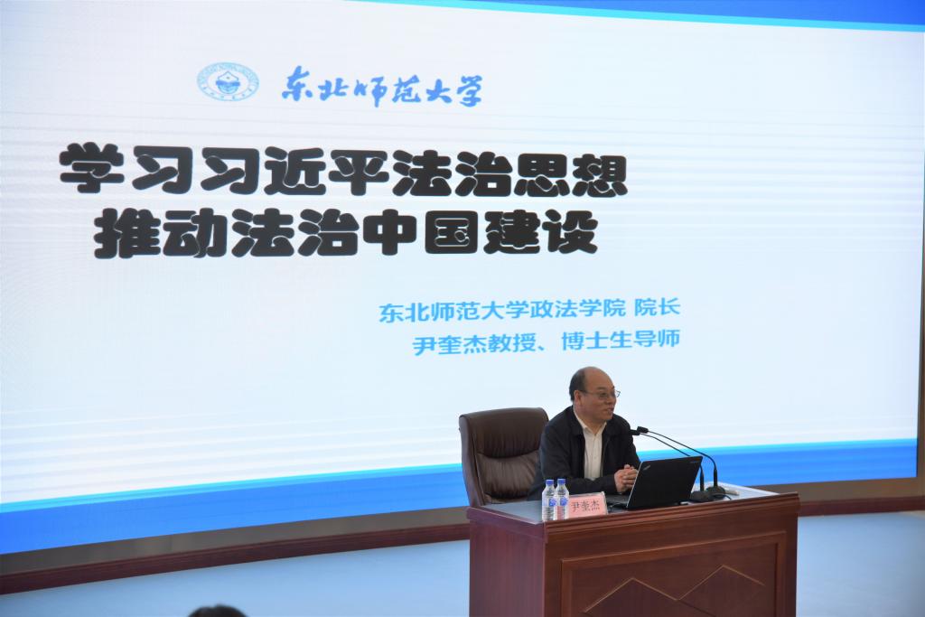 本网讯(法学院 供稿)2021年4月21日,长春市法学会“百名法学家百场报告会”法治宣讲进校园活动进入Beat365,此次宣讲在Beat365中文官方网站中国营商环境研究中心学术报告厅,由尹奎杰教授以“学习习近平法治思想、推动法治中国建设”为题展开。长春市法学会余晓竹副调研员、法学院法理教研室教师与部分研究生、本科生参加了此次讲座。讲座由法学院副院长王开宇副教授主持。