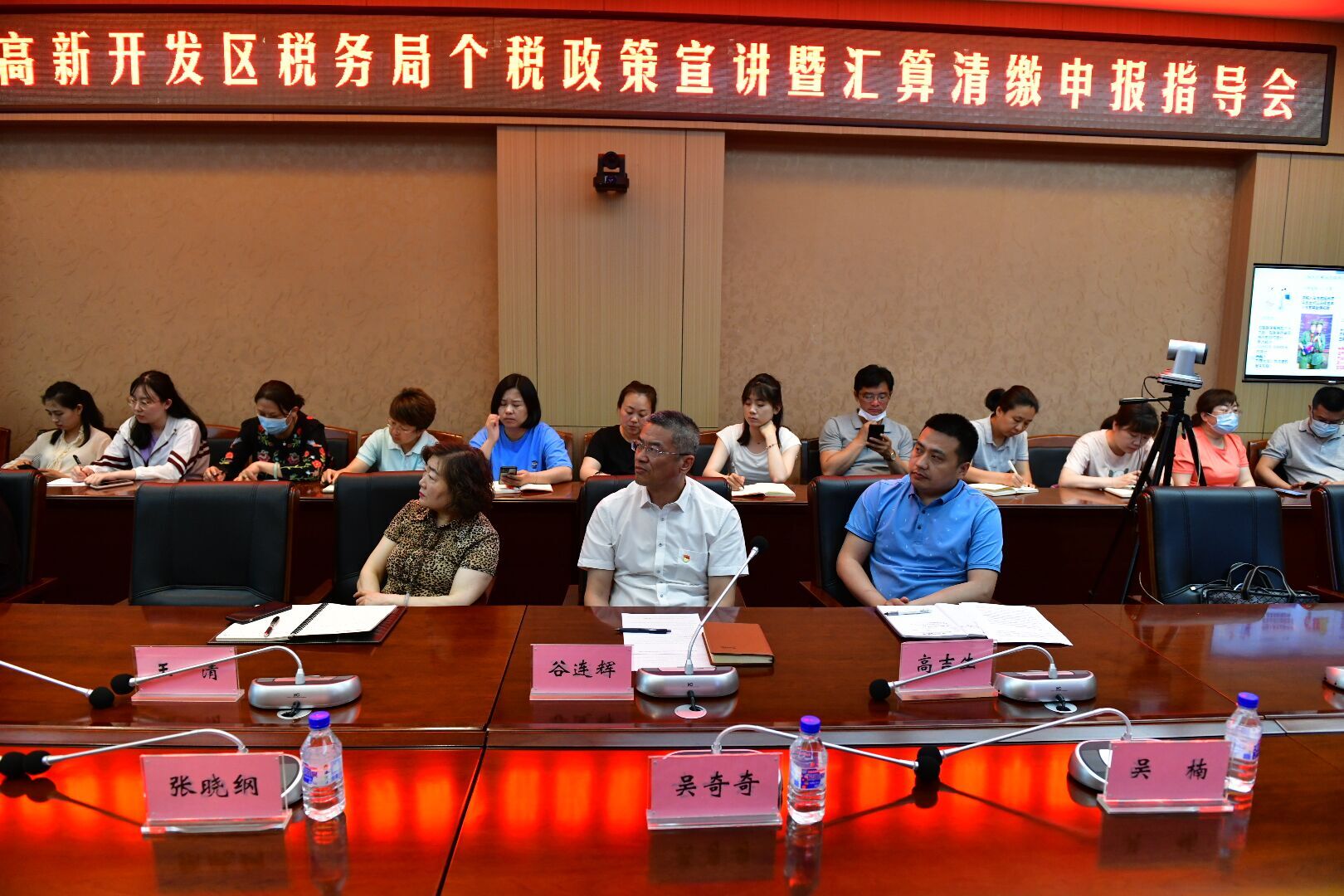 净月高新技术产业开发区税务局所得税科科长吴奇奇、玉潭所所长张晓纲、所得税科吴楠、玉潭所李琳琳莅临本次指导会。Beat365各教学单位、各党政机关部门代表及计划财务处全体人员现场参加会议,部分教职工线上参加会议。会议由计划财务处处长谷连辉主持。