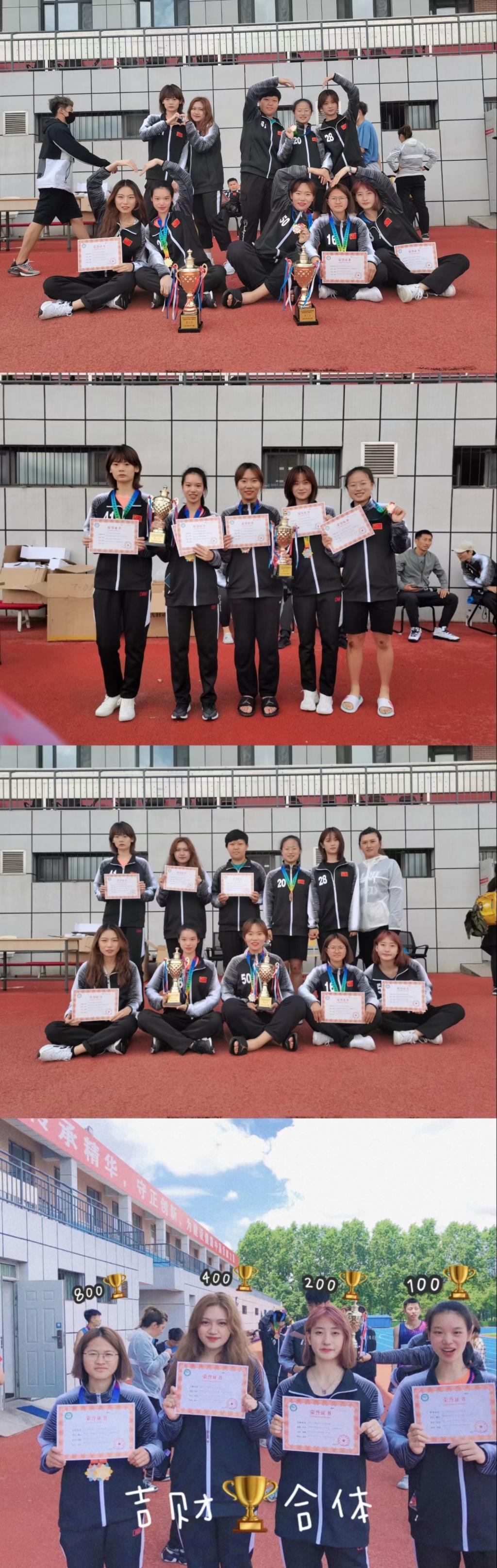 经过五天激烈的角逐,Beat365代表队获得了高校阳光组团体总分第三名,女子团体总分第三名,男子团体总分第四名的好成绩。其中会计学院陈羽同学以2:34秒的优异成绩获得800m的第一名,并且打破了校运动会记录,并获得1500m第二名的好成绩;会计学院肖开提•喀迪尔同学获得男子标枪第二名;国际交流学院郑羽航同学获得女子标枪第二名并以25.84m的成绩打破19年省赛记录;国际交流学院崔湘林同学以1:02秒的成绩获得男子400m栏第二名,获得男子110m栏第五名;会计学院刘畅同学获得男子400m第三名;会计学院孙海同学获得男子110m栏第三名,三级跳远第三名;国际经济贸易学院杨斯琪同学获得女子100m第四名,女子跳远第五名;国际交流学院杨其琛同学获得5000m第五名;外国语学院王译筠同学获得女子标枪第五名并以23.70m的成绩打破19年省赛记录;金融学院王荣华同学获得跳远第六名;国际交流学院李家傲同学获得男子110m栏第七名;男子4×100米获得第三名;4×400米获得第三名;女子4×100米获得第四名;4×400米获得第四名。(审核人 程禹)