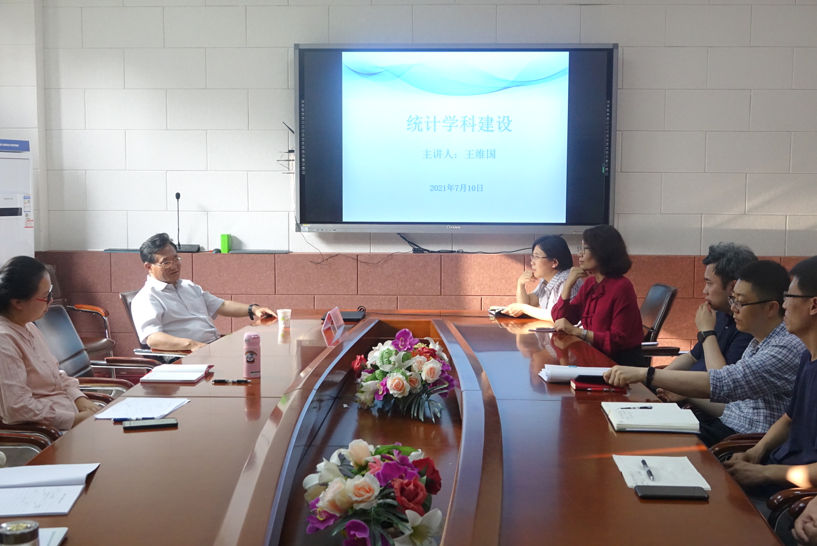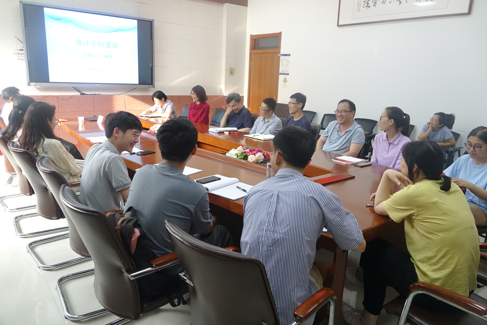 本网讯(统计学院 供稿)7月10日下午,应统计学院邀请,东北财经大学副校长王维国教授以“统计学科建设”为主题,在综合楼145会议室为统计学院师生作报告。会议由统计学院院长李国荣教授主持,教务处处长马秀颖教授、统计学院教师和部分研究生参加了此次报告会。