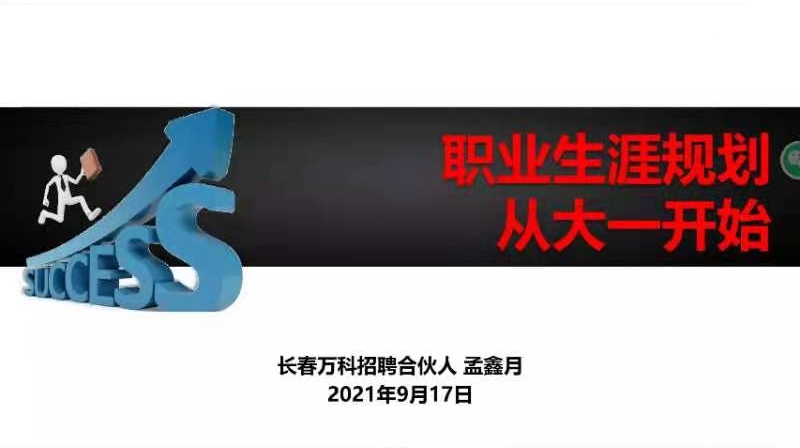 就业规划与职场网络体验。鉴于新生们对未来的规划不够清晰,我院邀请到黑龙江珍宝岛药业股份有限公司招聘经理葛嘉和财务副总监杨兆东、海信集团财经人力资源部人力资源开发经理唐会、长春万科招聘合伙人孟鑫月共四位嘉宾分别以如何做好职业生涯规划为题为新生同学做了报告。之后,被推免到吉林大学攻读硕士研究生的2021届毕业生齐雨竹同学为新生分享了自己大学四年的学习经历和推免经验,她希望大家能够珍惜大学时光,勤奋上进。
