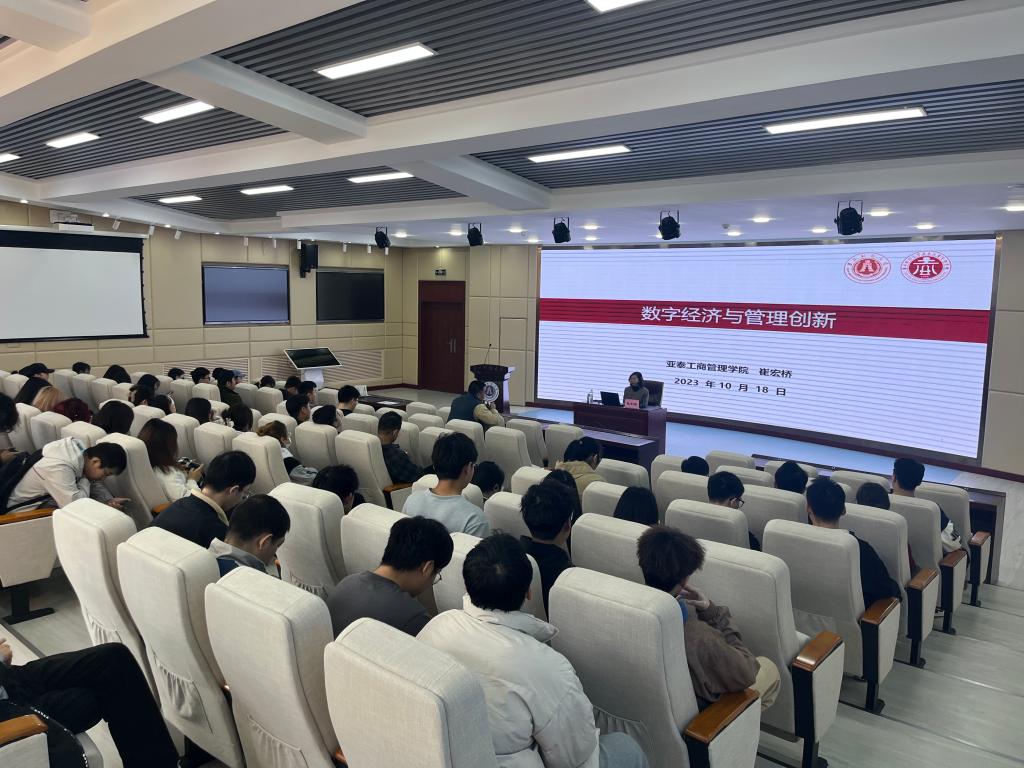 10月18日下午,科研处联合亚泰工商管理学院在第一教学楼1102报告厅举办了第八讲“吉财善水讲坛”,邀请亚泰工商管理学院院长崔宏桥教授做了题为“数字经济与管理创新”的学术报告。本次报告会由亚泰工商管理学院副院长孟祥君主持,学院部分师生参会。
