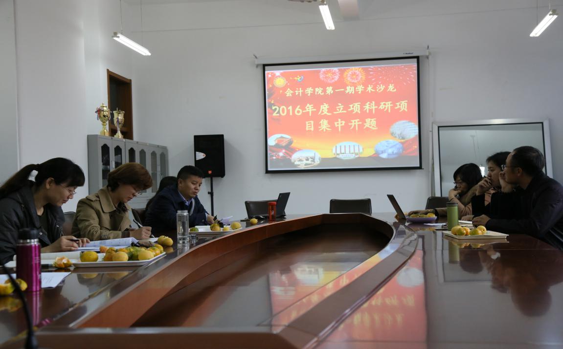 本次开题不仅是会计学院2016年度立项科研项目的集中开题,也是会计学院举办的第一期学术沙龙活动,其目的在于要求承担项目的老师高度重视开题工作,同时鼓励教师积参与学院科研学术活动,为两金申报做足前期准备工作,为学院创造良好的学术氛围。