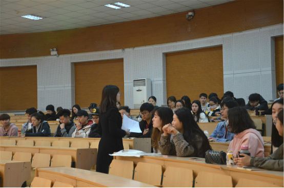 2018年3月16日,应用设计学院2014级学生年级大会暨就业指导大会在千佛山校区一号教学楼阶梯教室举行,2014级学生的辅导员郑静主持会议,2014级全体毕业生参加本次会议。