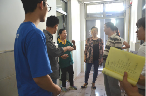 检察人员一行从一楼到六楼依次查看每间宿舍的情况,在各个宿舍的卫生状况、有无使用违规电器的行为、杂物堆积问题等方面做出评判。通过学生宿舍的检查,各位老师仔细查看可能隐藏在学生生活中容易发生危险的细小方面,以此强调学生注意。