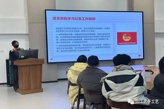 各团支部书记聚焦团支部工作,通过书面汇报和PPT展示相结合的方式,围绕班子建设、制度落实、团员管理、组织生活、作用发挥五个方面,全面梳理了2023年度支部组织建设、志愿服务、社会实践、主题团日等工作。