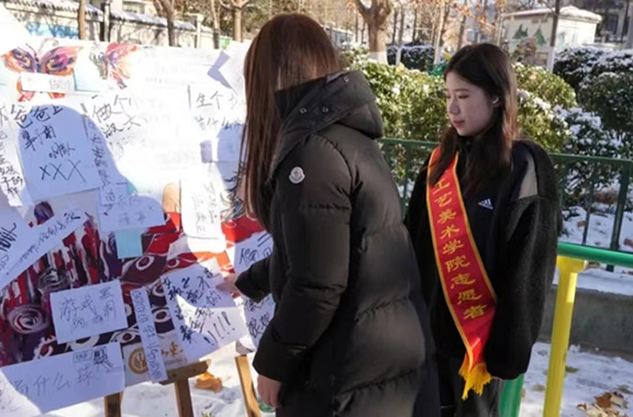 在此次活动中,实践团队成员为大家精心准备了爱心贴纸,借此机会让大家在贴纸上书写下积极向上的温馨寄语,为城市注入正能量。在大家的共同努力下,这些带着期许的贴纸在冬日暖阳的照耀下熠熠生辉,犹如点点星光,为我们带来温暖与希望。
