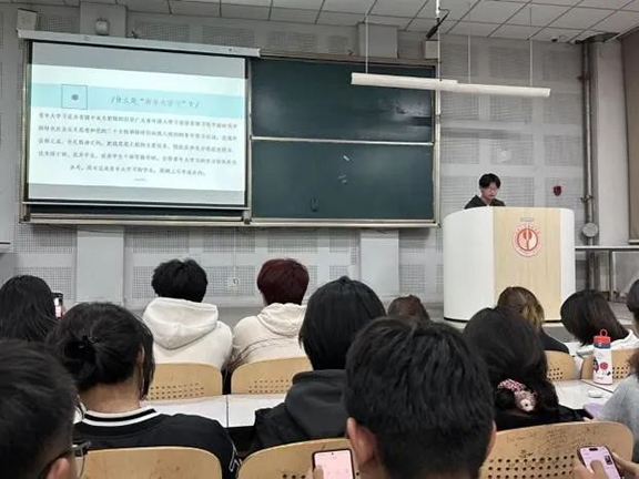 工业设计学院团总支面向广大团员和青年开展校园文化主题教育,以习近平新时代中国特色社会主义思想为指导,全面贯彻党的教育方针,落实立德树人根本任务,实施素质教育,丰富学生课外活动,激发学生参与校园活动的积极性,加深对学校的热爱之情。李鑫向学院学生组织干部、干事开展校园文化宣讲,引导青年学生认真落实学生组织工作,回顾初心使命,提升责任意识,加强主人翁精神,发挥先锋带头作用,促进学生全面发展。